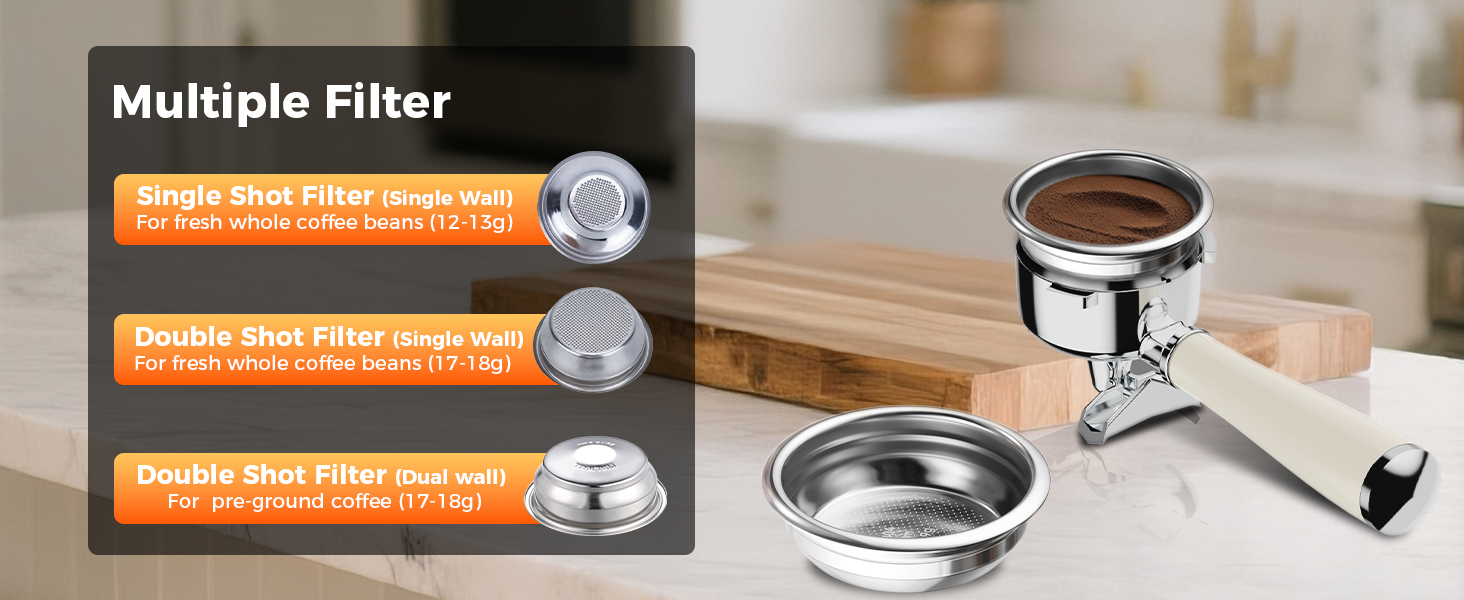- [58mm Commercial Grade Brew System] - The 58mm commercial-grade stainless steel filter, compared to the standard 51mm filter, creates a thinner coffee layer and achieves higher extraction efficiency with the same amount of grounds. With its plastic-free 58mm brewing head and low-pressure pre-soaking function, it delivers a more thorough extraction, resulting in an espresso with a refined taste and rich crema.